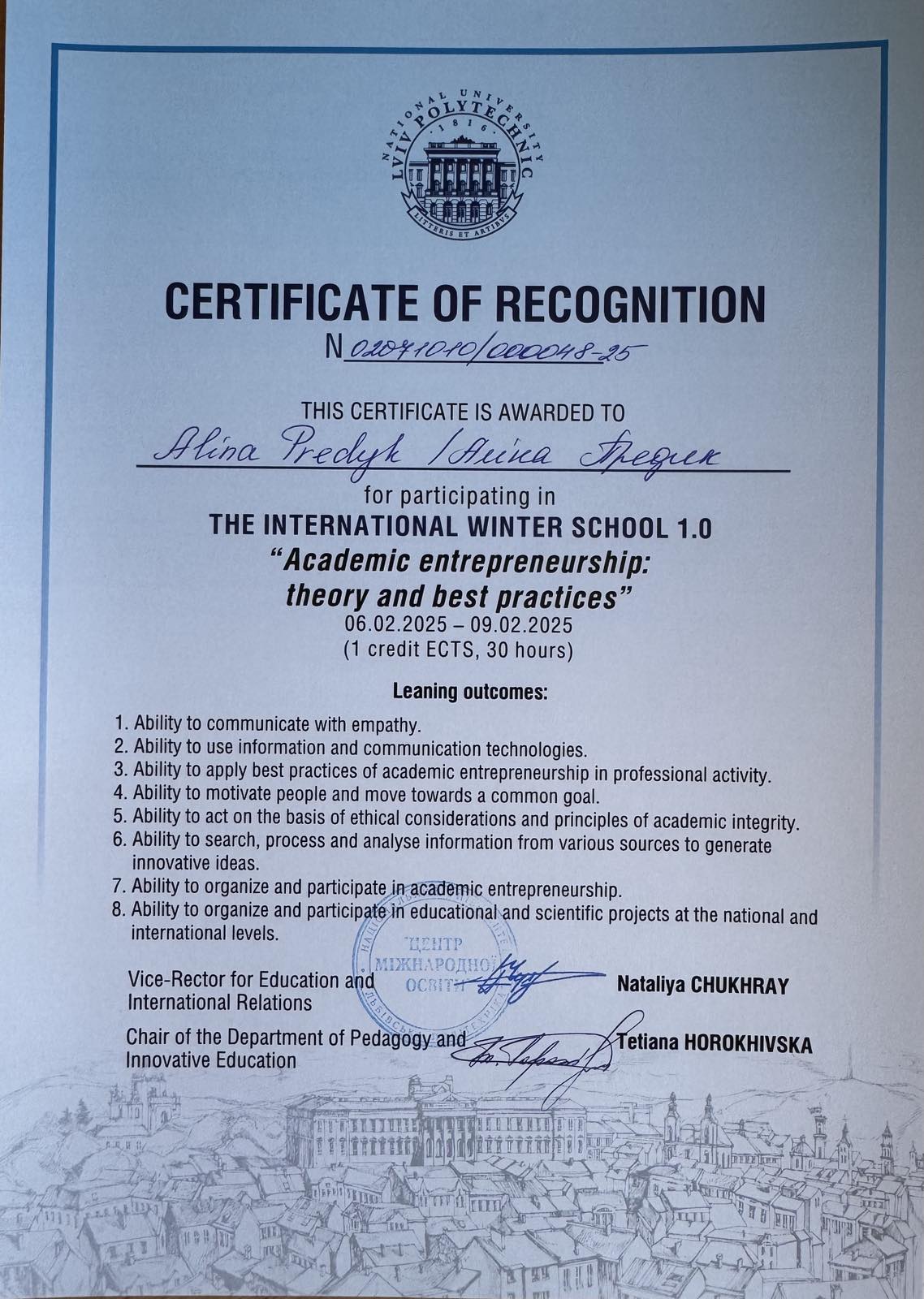1)Предик А.А. ПРОГРАМА Міжнародної науково-практичної інтернет-конференції молодих дослідників «Інновації в науці: сучасний вимір» 04 травня 2023 року (м.Суми).