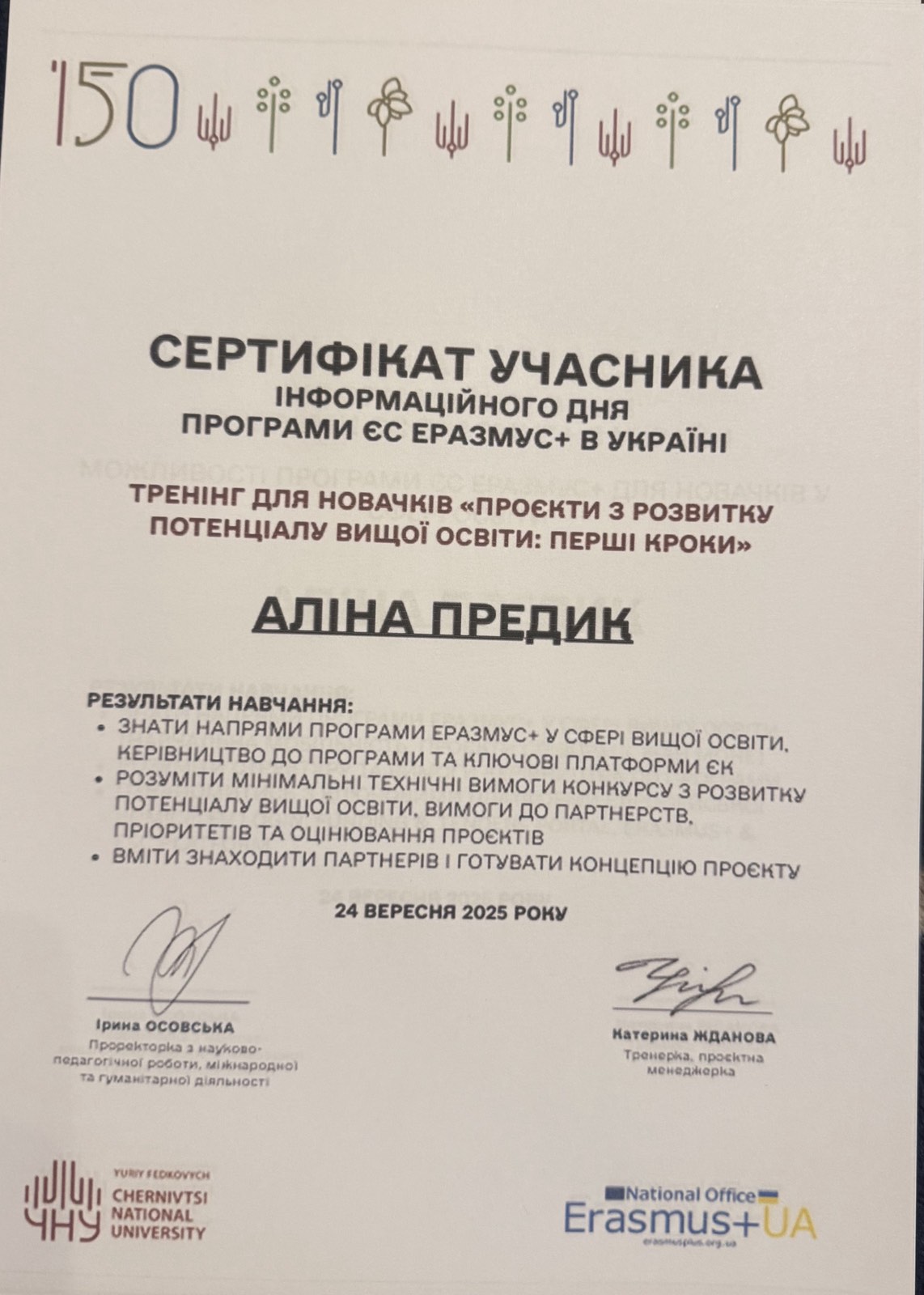 9) Ялимов О. (2025) Освітнє середовище як фактор успішної соціалізації молодших школярів (наук.керівник доц.Предик А.А) / Тези доповідей студентської наукової конференції Чернівецького національного університету (16–17 травня 2025 року). Факультет педагогіки, психології та соціальної роботи. – Чернівці : Чернівец. нац. ун-т ім. Ю. Федьковича, 2025. – 197 с