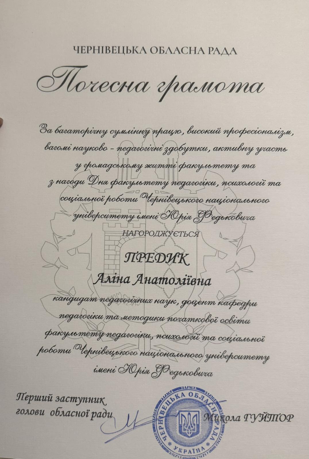 Предик А.А. відповідальна за наукову роботу кафедри, виконує обов’язки заступника завідувача кафедри з наукової роботи.